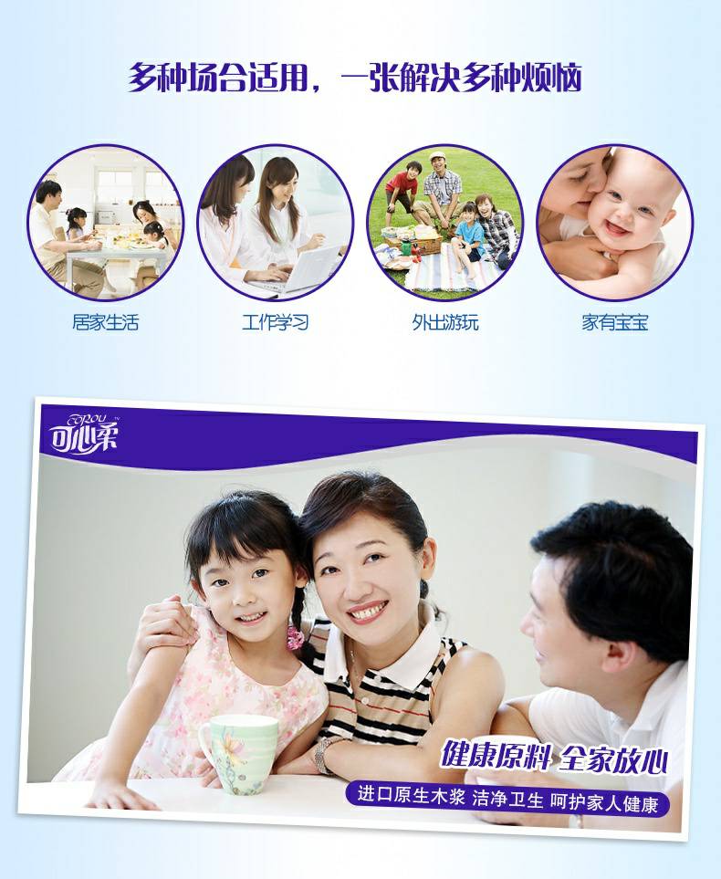 可心柔 V8系列CoRou云柔系列白色木浆60抽