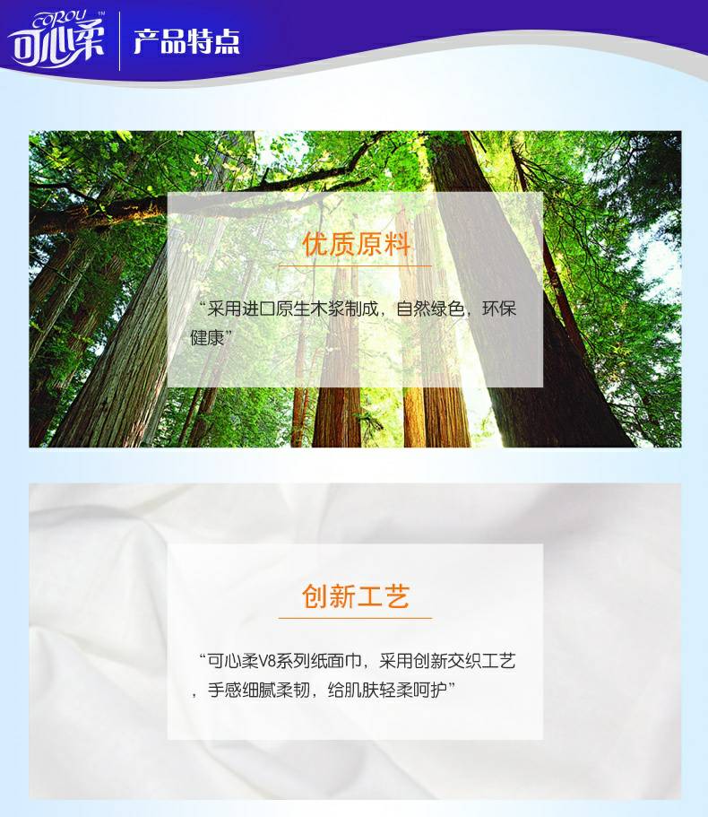 可心柔 V8系列CoRou云柔系列白色木浆110抽